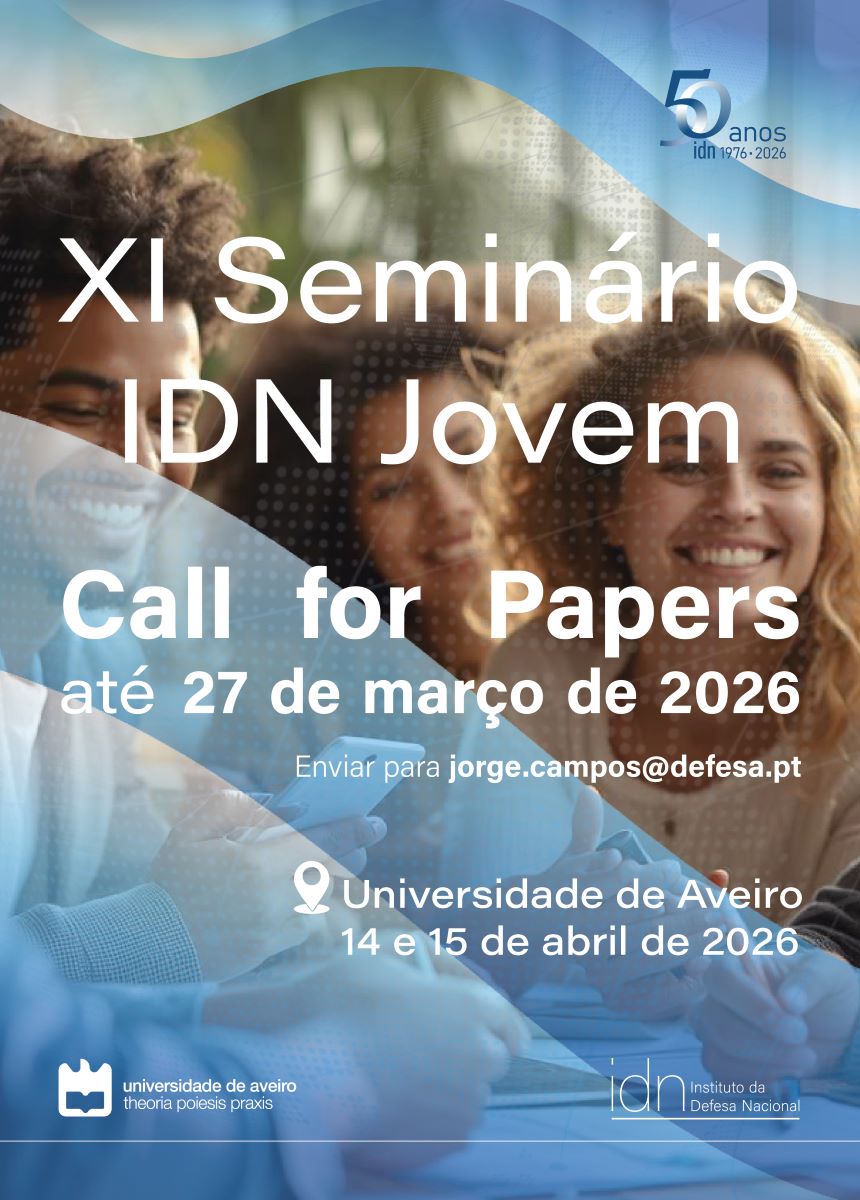 Desta forma, o IDN, numa organização conjunta com diversos Núcleos de Estudantes de Ciência Política e de Relações Internacionais de Estabelecimentos de Ensino Superior Portugueses, realizará o XI Seminário IDN Jovem que terá lugar a 14 e 15 de abril de 2026 na Universidade de Aveiro, destinado a todos os estudantes do ensino superior que entendam concorrer.